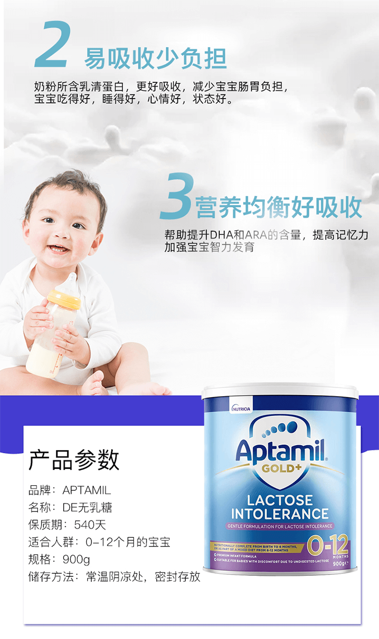 澳洲爱他美De-Lact婴幼儿防腹泻无乳糖奶粉 900g