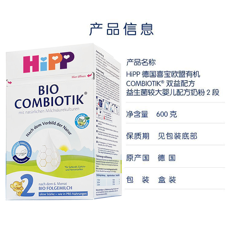 【荷兰直邮】德国喜宝Hipp益生菌奶粉 2段 600g