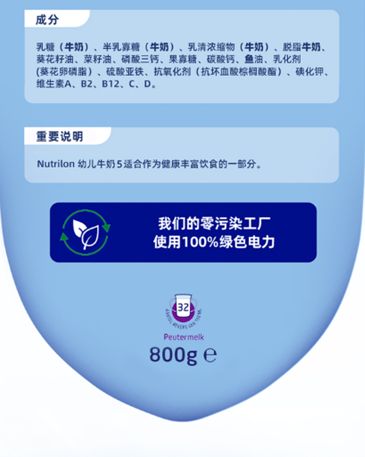 海外直邮 【欧洲直邮】荷兰牛栏Nutrilon 5段 800g(新包装)