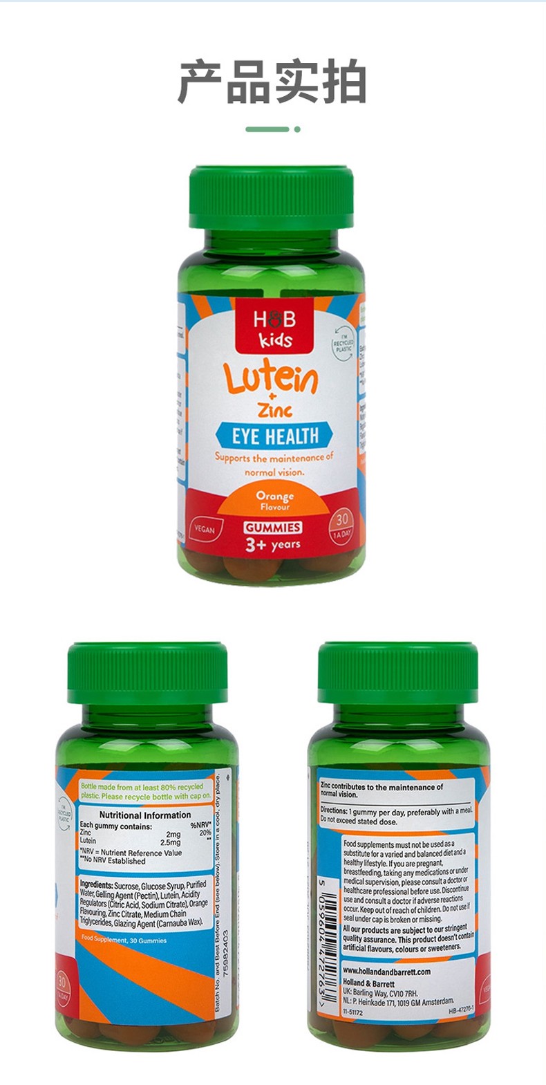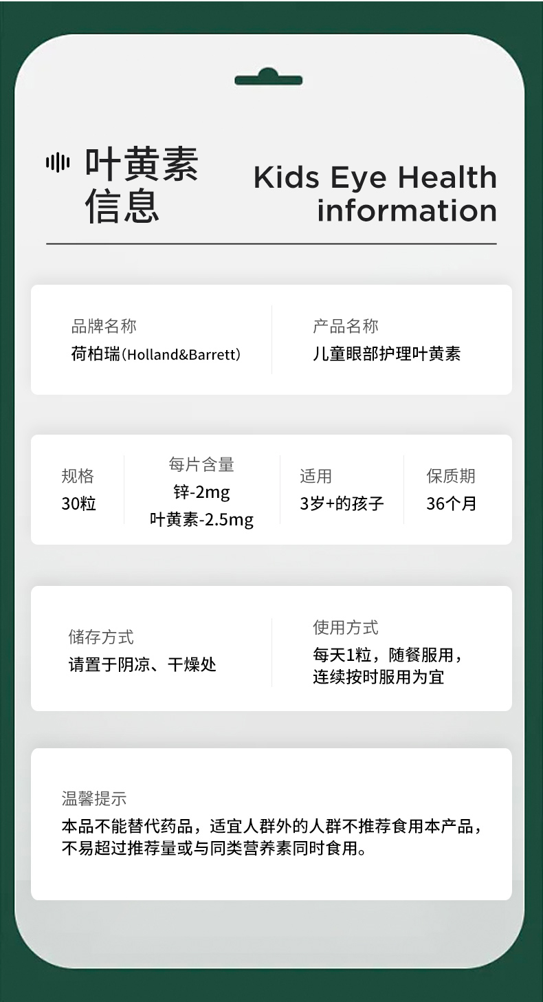 英国HOLLAND&BARRETT荷柏瑞健康儿童叶黄素30粒/瓶