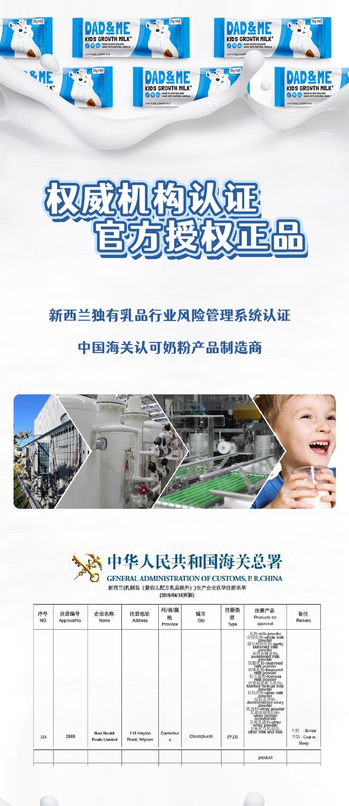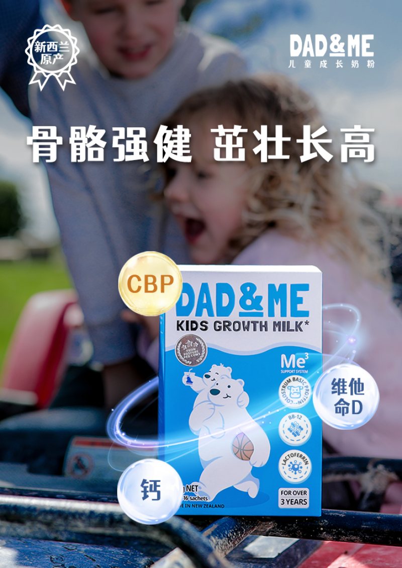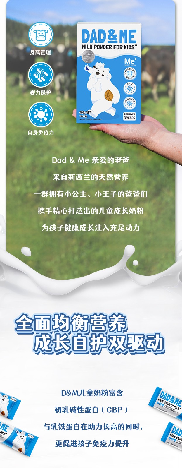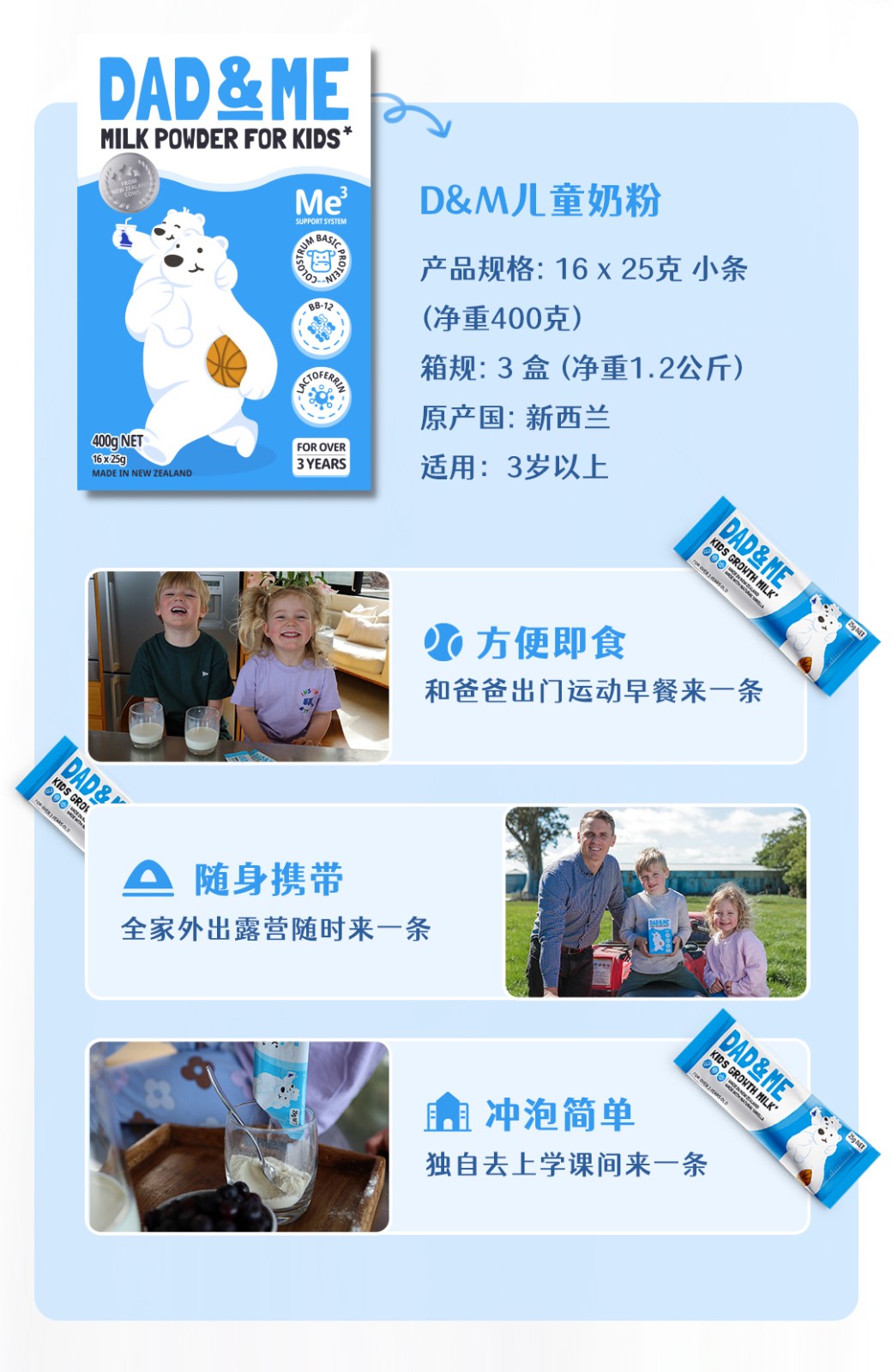 【清仓】新西兰原装进口Dad&Me初乳碱性蛋白儿童调制乳粉25g*16条成长儿童学生奶粉