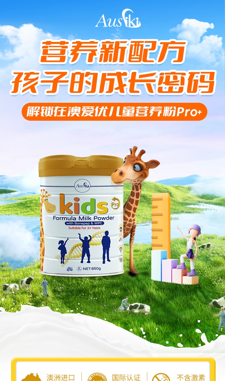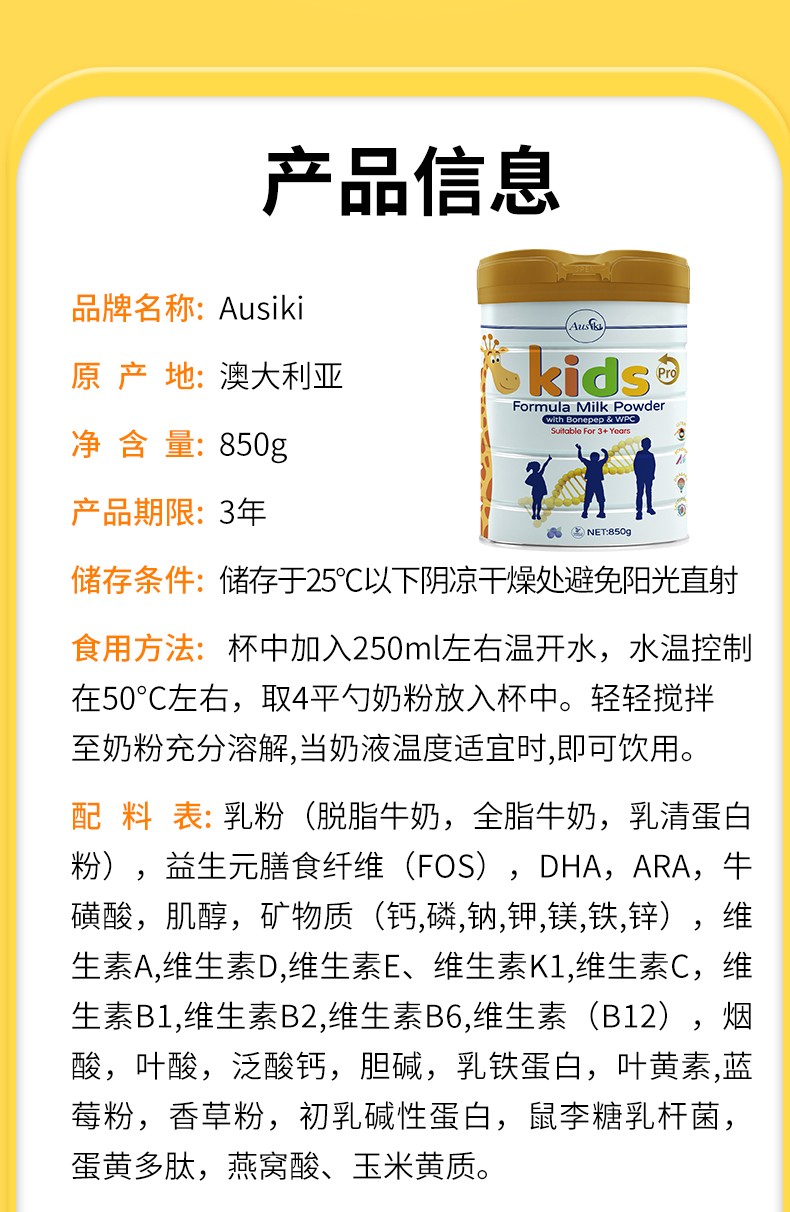 澳爱优 AUSIKI 儿童免疫倍护长高营养粉Pro加强版 850g