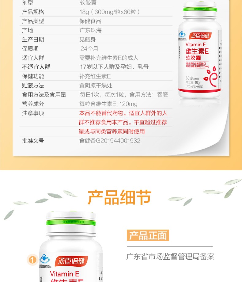 汤臣倍健维生素E软胶囊60粒*2瓶