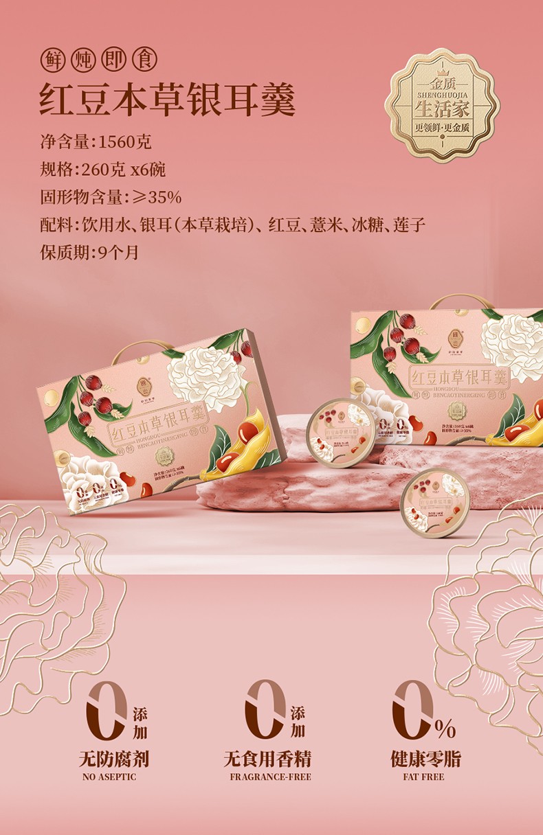 国内发货 圃也家红豆本草鲜炖银耳羹1560g