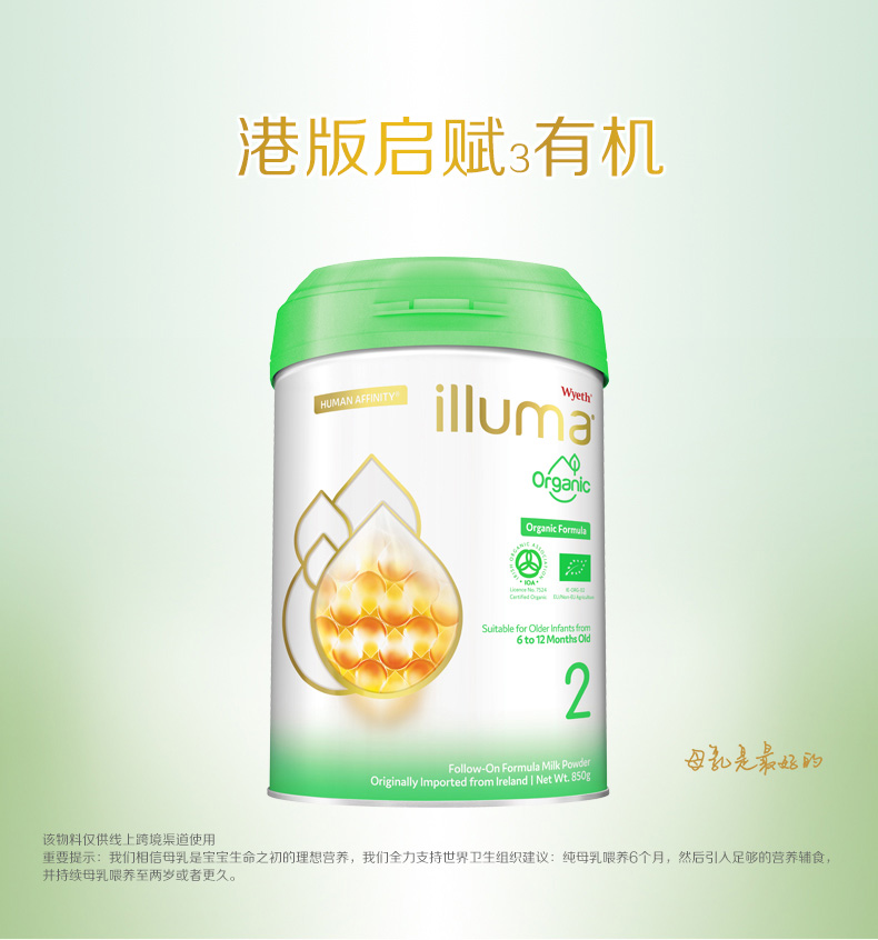 【2024新包装】港版惠氏启赋有机illuma organic 2段 850g