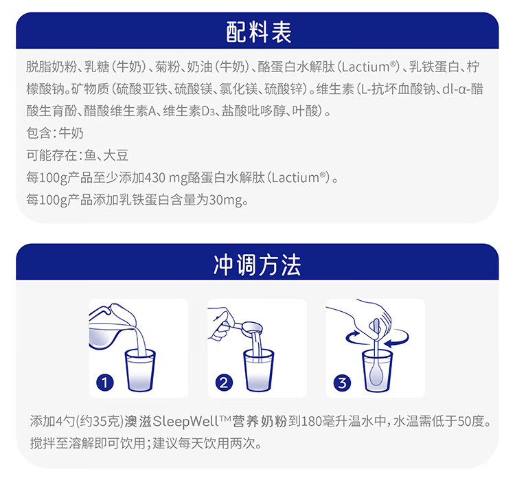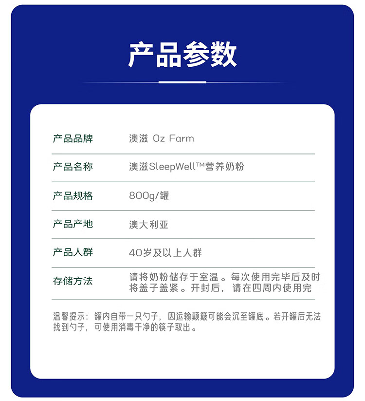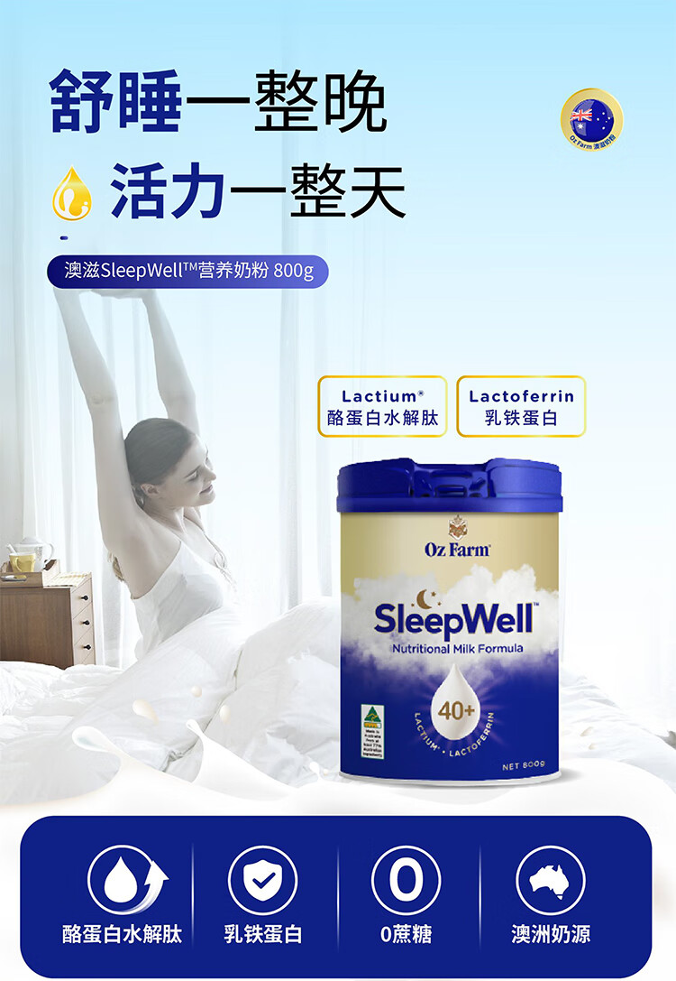 澳大利亚OZ FARM澳滋SleepWell睡眠粉营养配方奶粉800g/罐