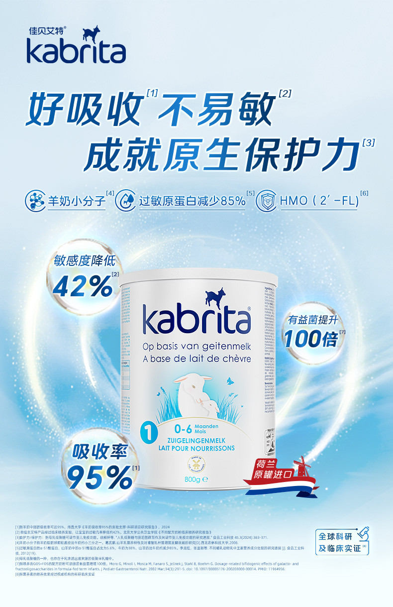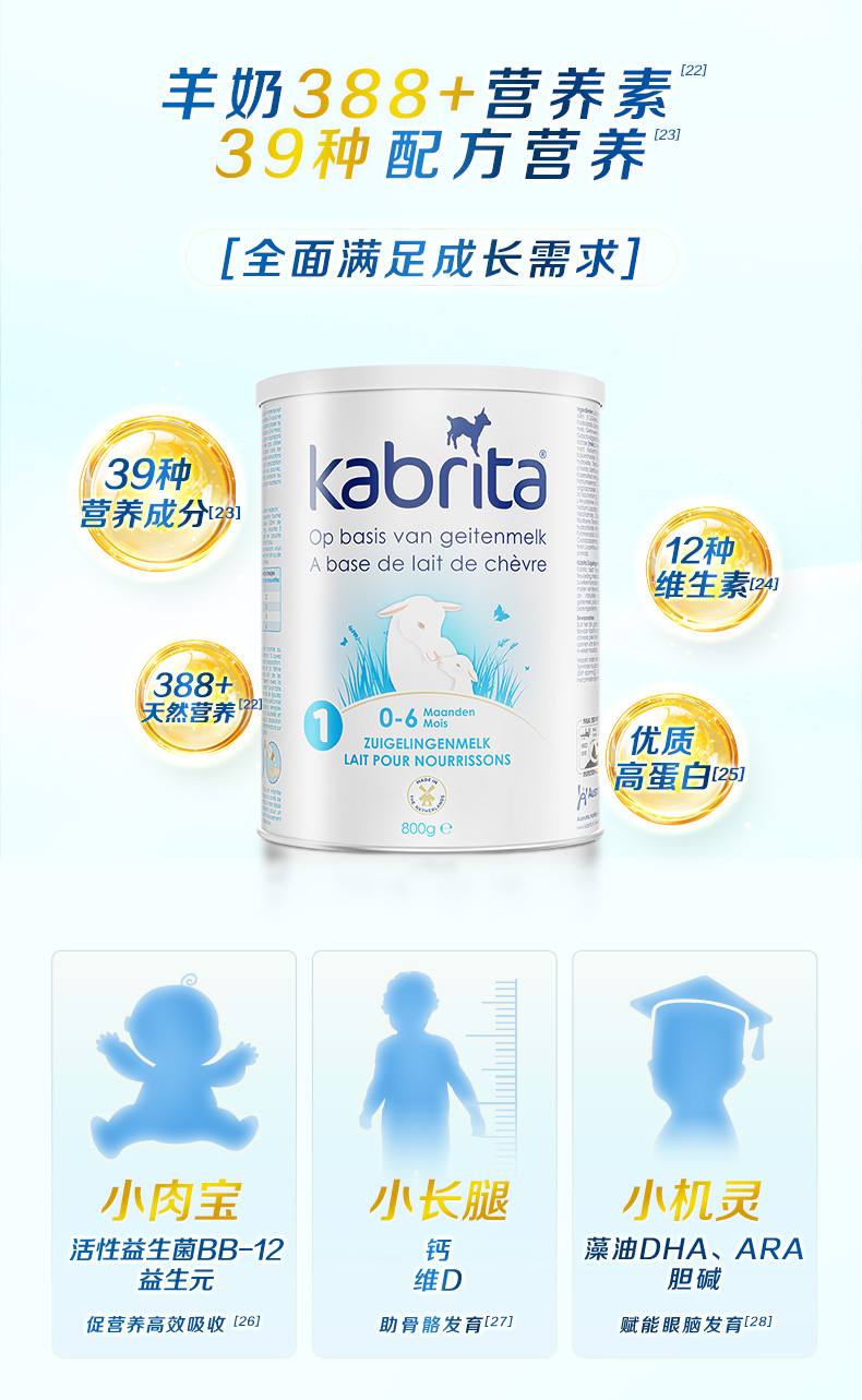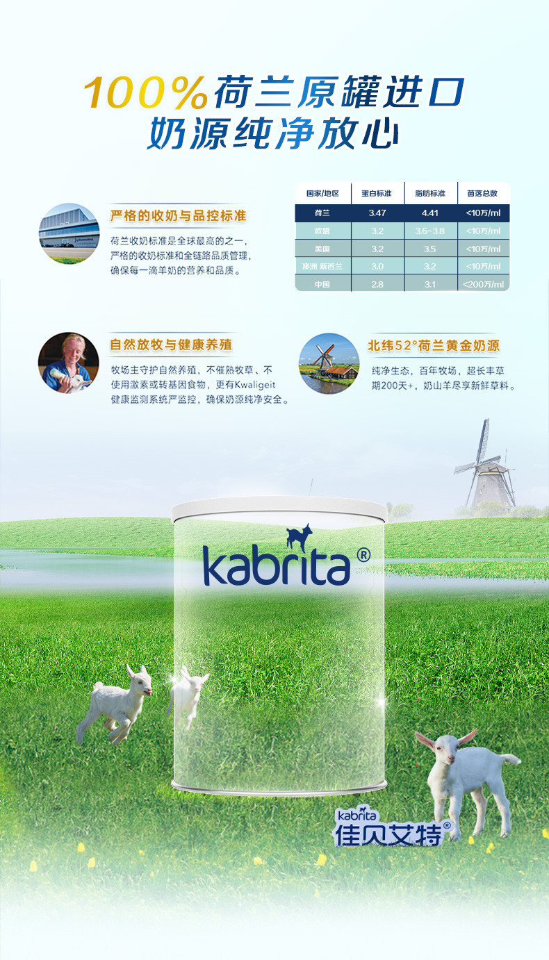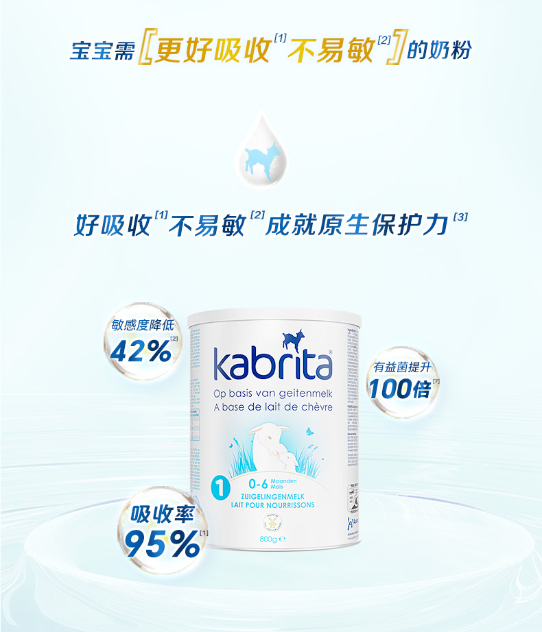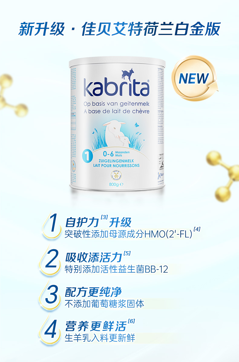 荷兰版 kabrita佳贝艾特婴幼儿羊奶粉白金版1段0-6个月800g/罐