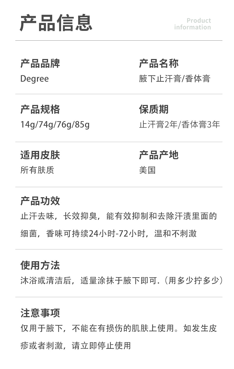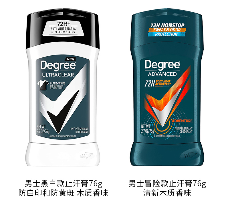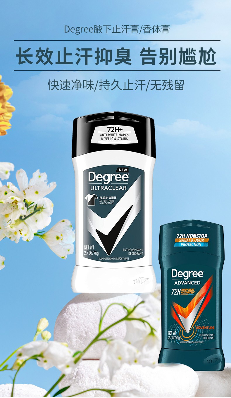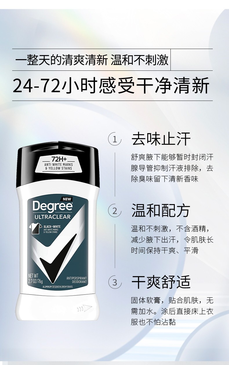 美国Degree黑白男士48H止汗香体膏76g/瓶