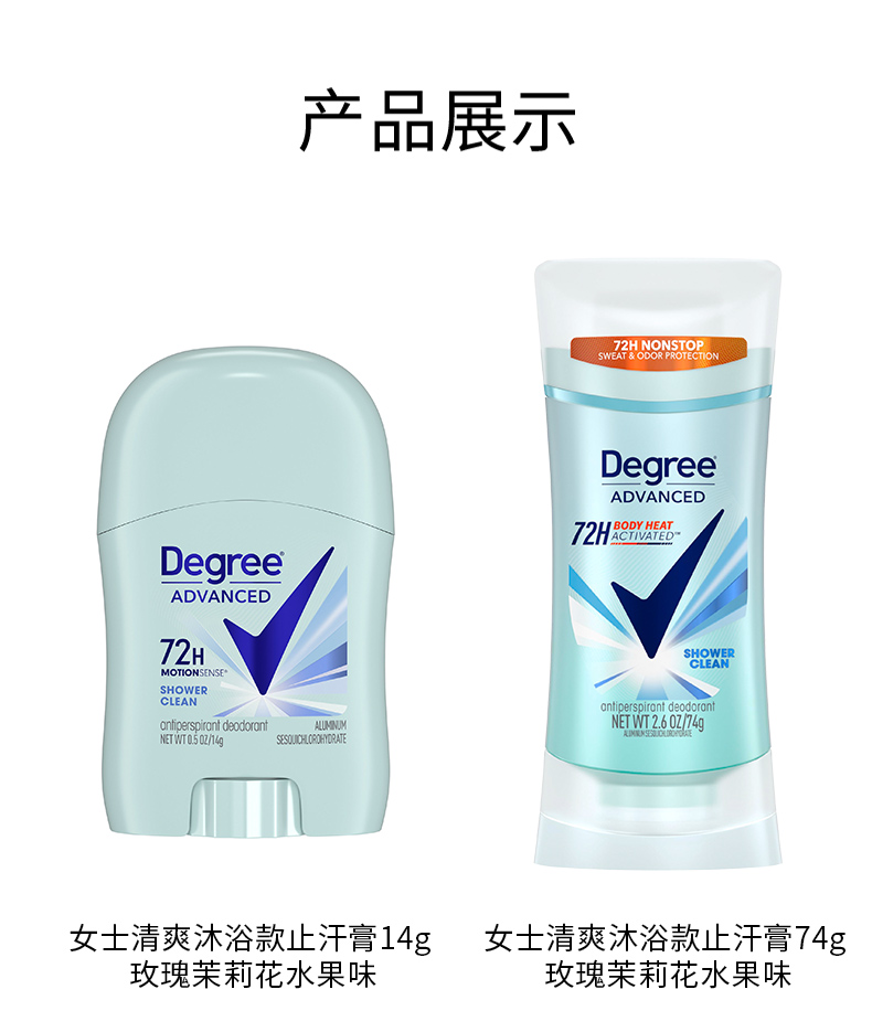 Degree72H女士清爽款止汗香体膏14g/瓶-玫瑰茉莉花水果味