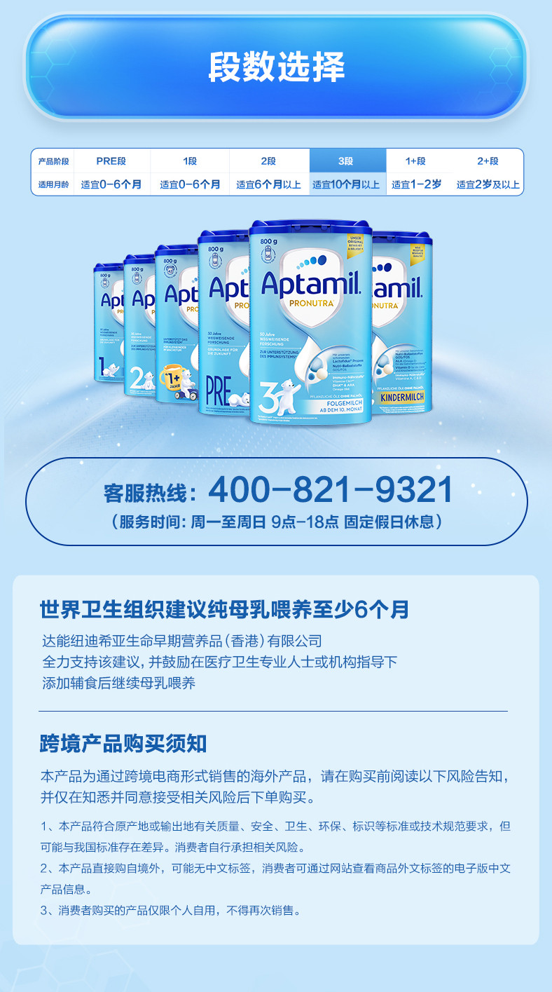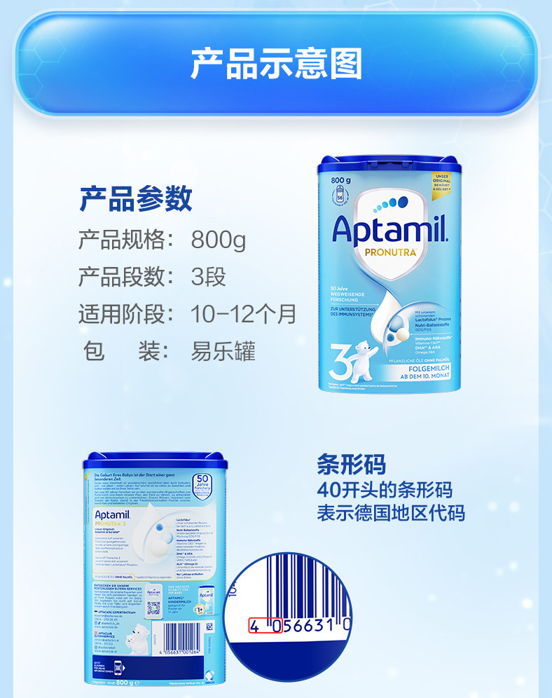 德国爱他美Aptamil 经典3段800g 2025新版