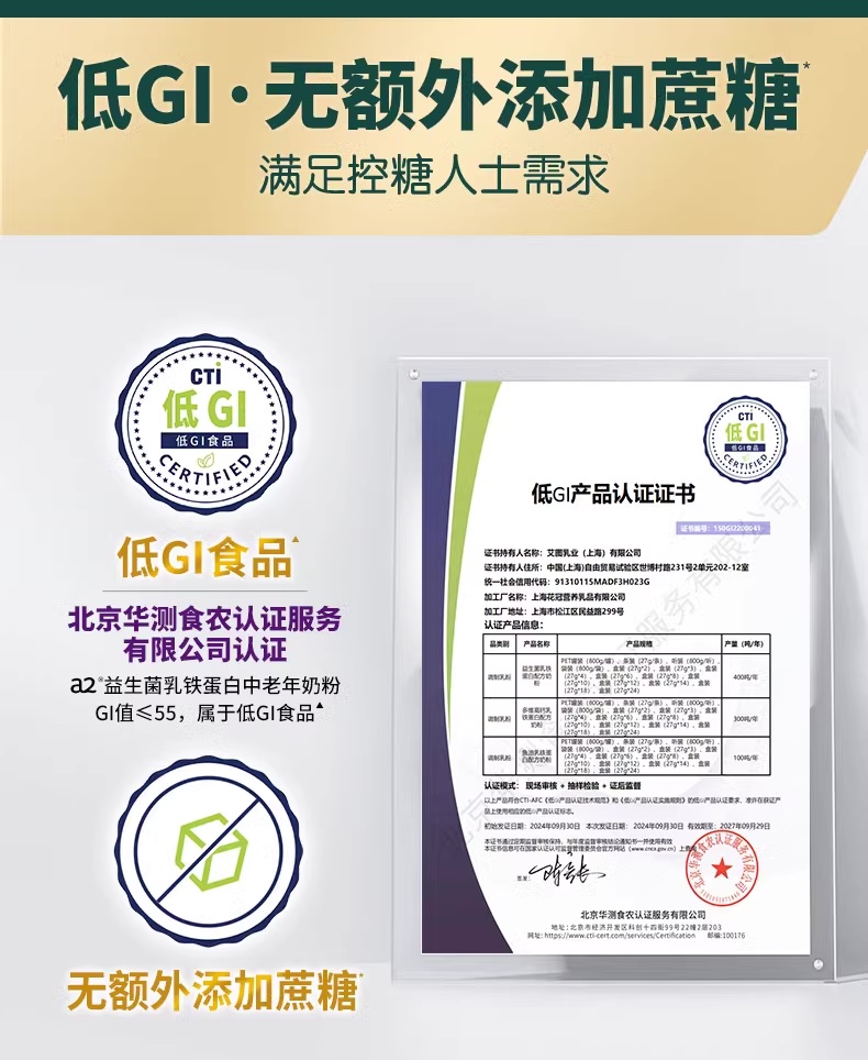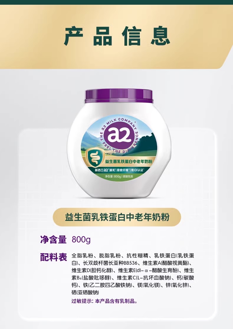 A2益生菌乳铁蛋白中老年奶粉800g