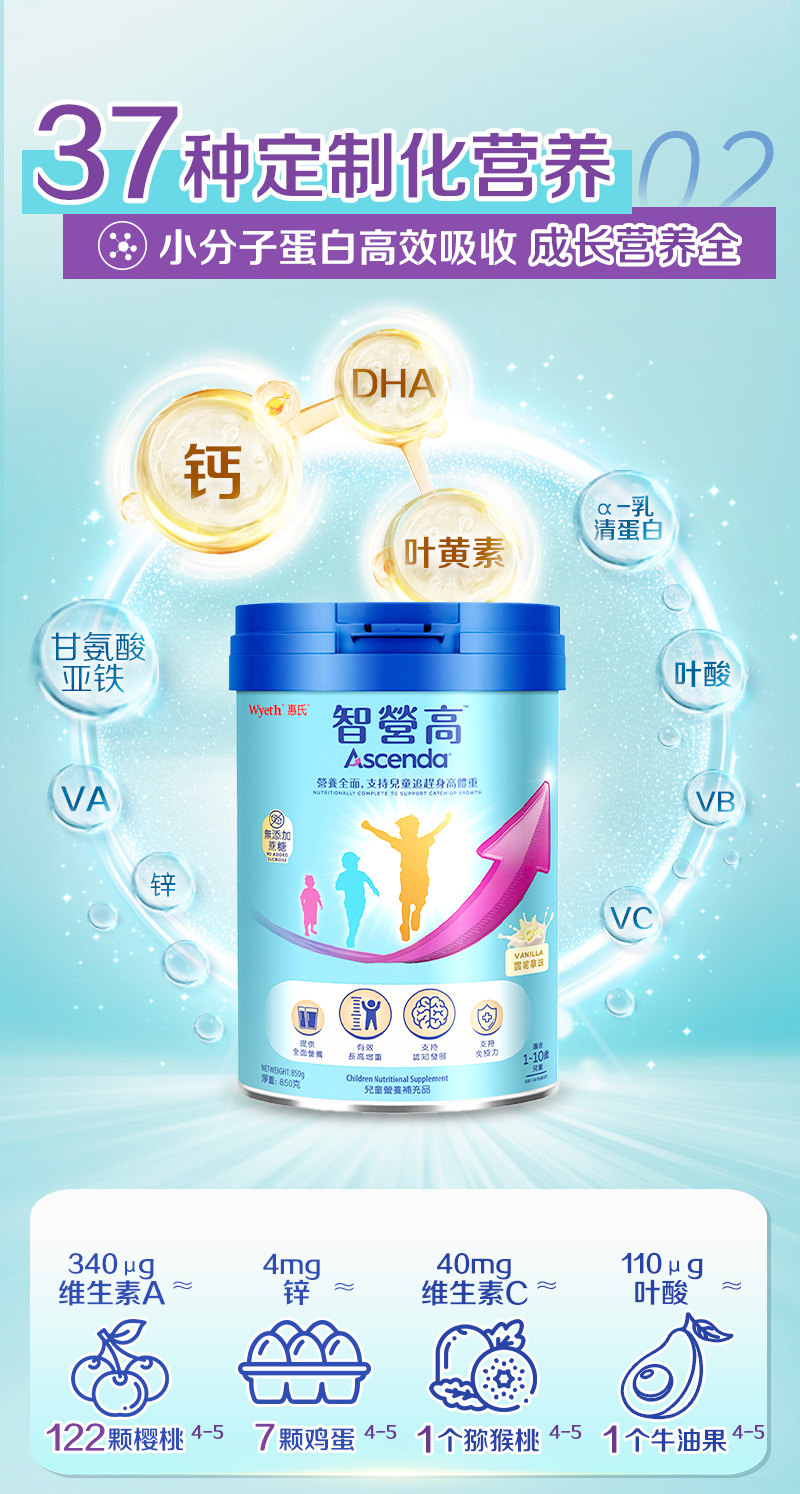 保税直供 惠氏Ascenda 火箭罐 儿童奶粉850g