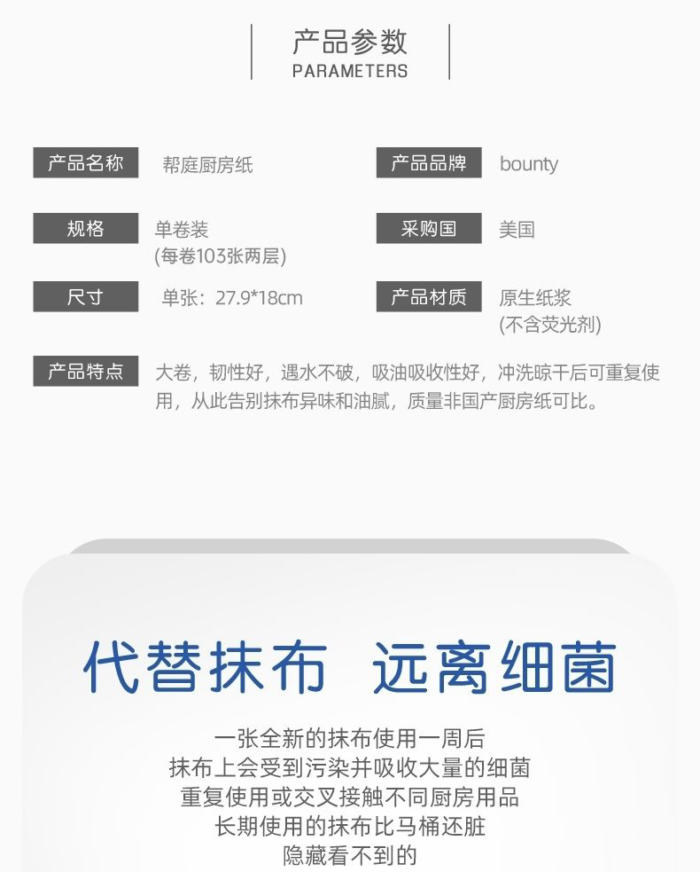 美国Bounty厨房吸油吸水卷纸 103张/卷