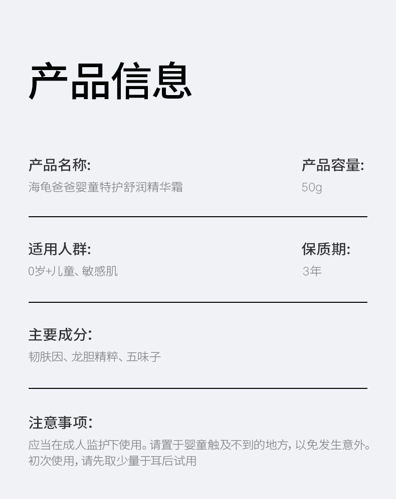 海龟爸爸 婴童特护舒润精华霜50g(蓝胖子)