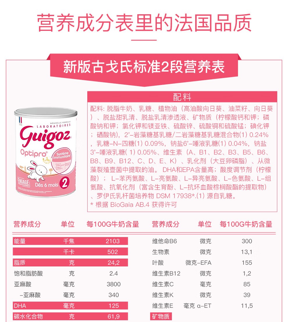 【残次】法国古戈氏Guigoz 2段标准配方牛奶粉 830g(新包装)