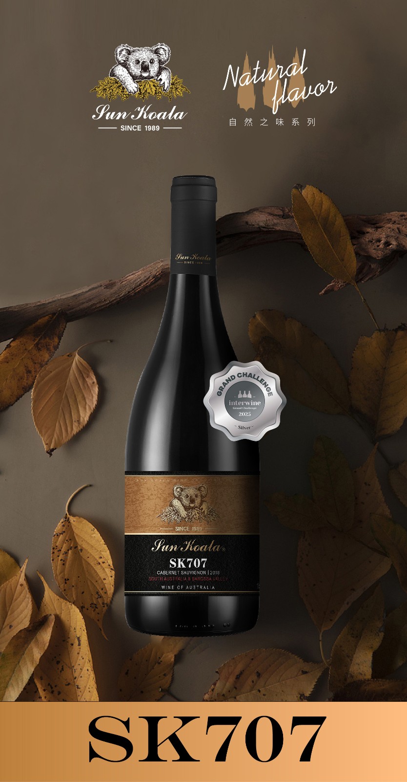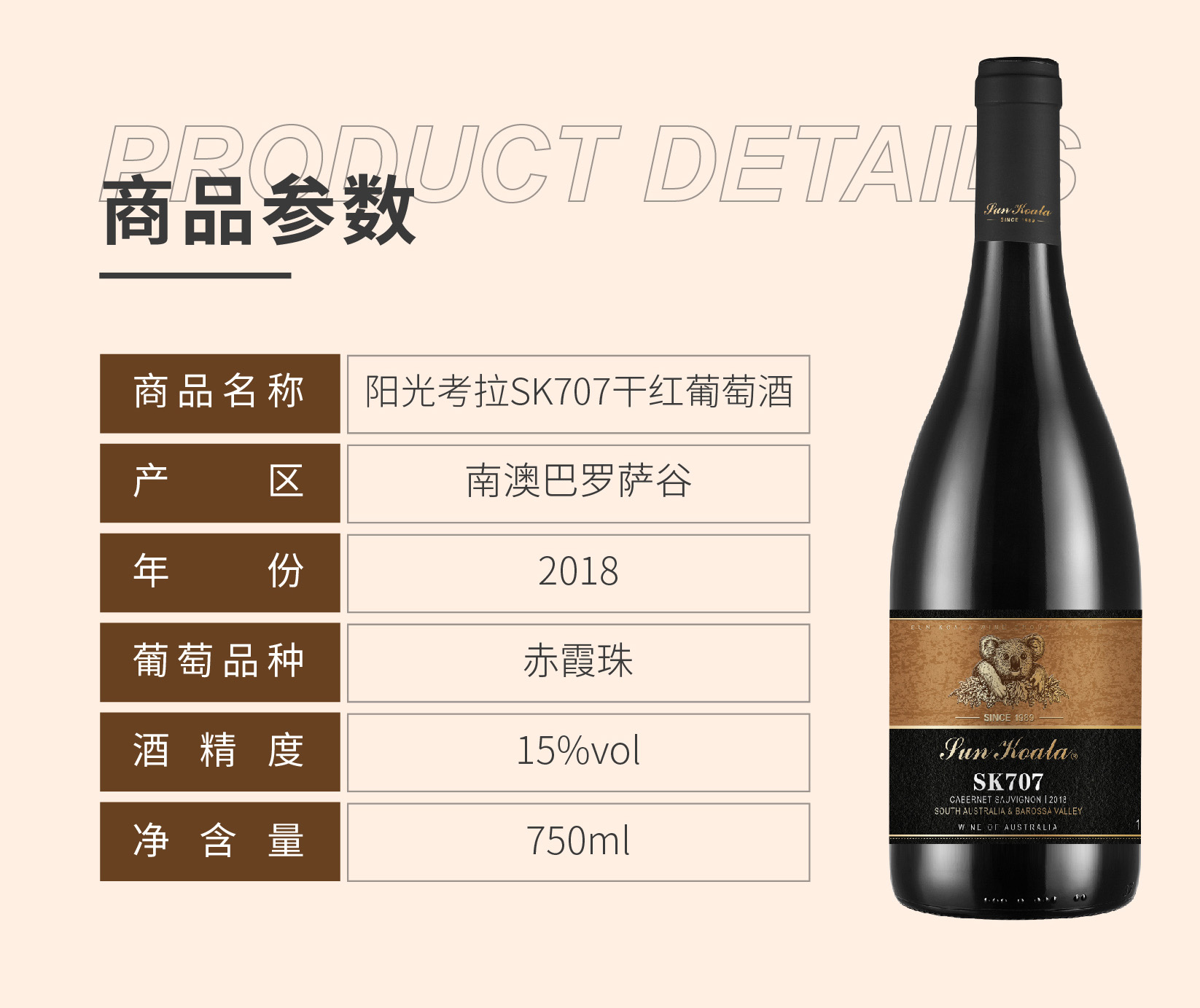 澳洲原瓶原装阳光考拉石灰岩岸 SK707赤霞珠干红红酒 750ml 新包装