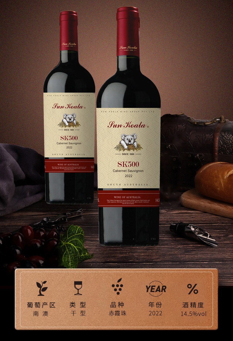 澳洲原瓶原装阳光考拉SK500干红红酒 750ml
