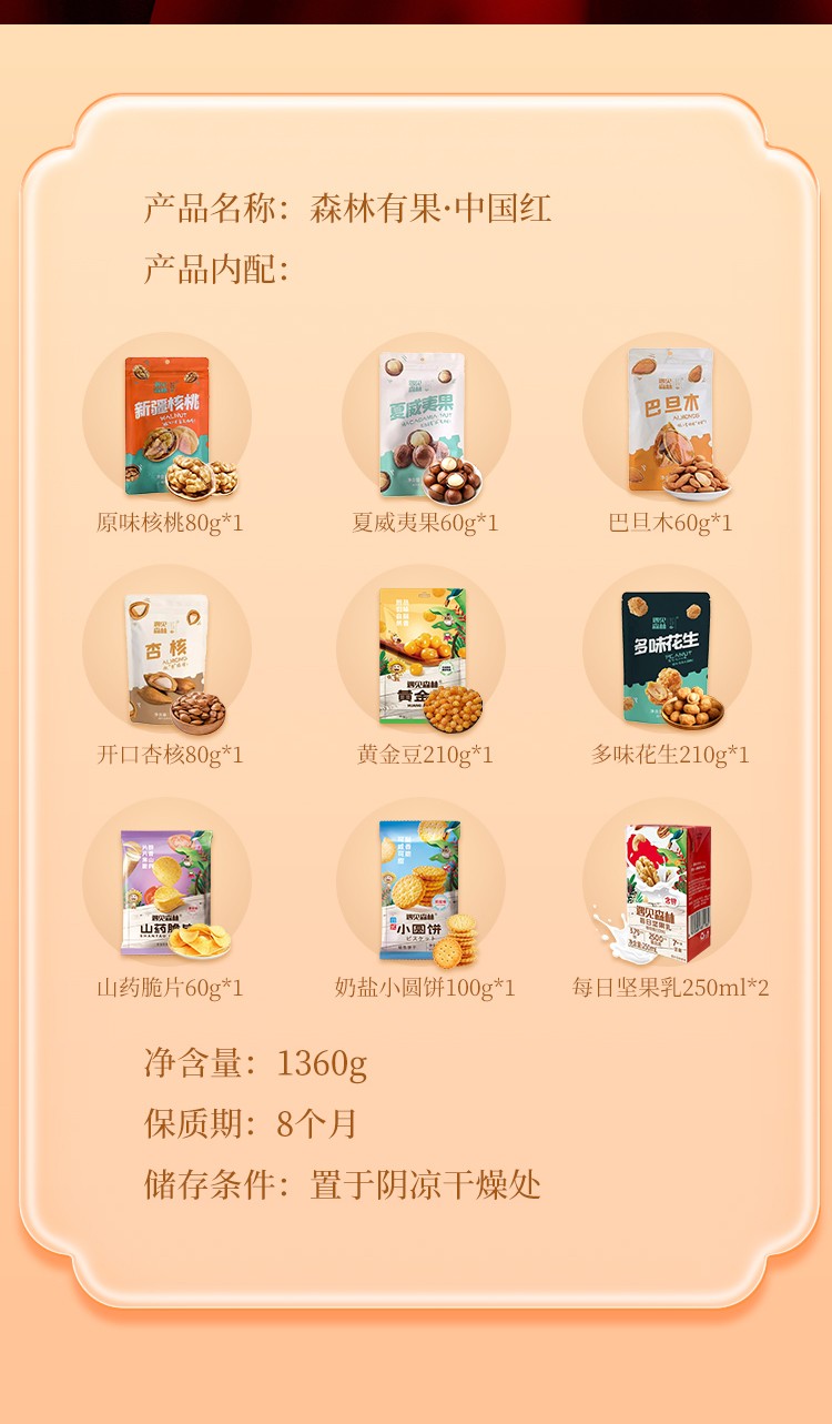 遇见森林森林有果中国红1360g坚果零食大礼包