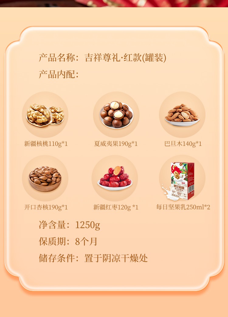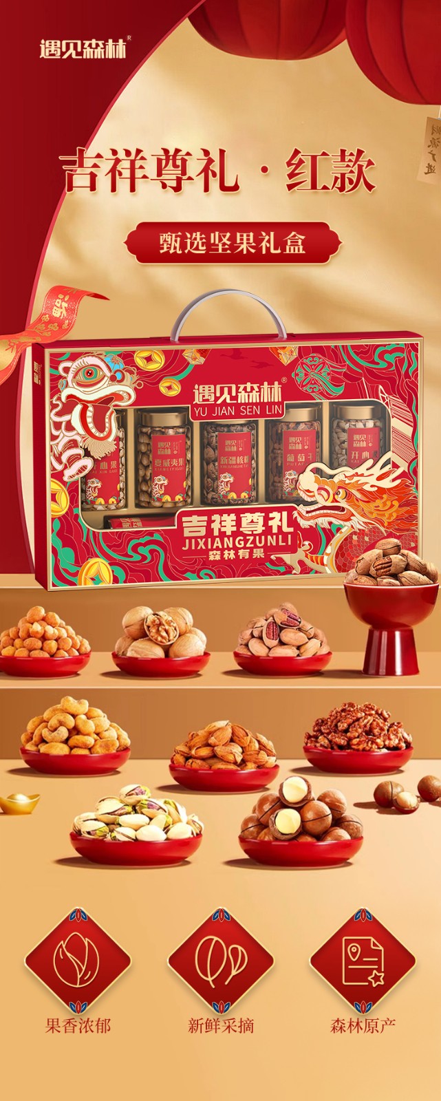 遇见森林 吉祥尊礼红款1250g坚果年货礼盒装
