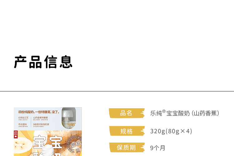 国内发货 乐纯宝宝酸奶-山药香蕉-80g*4