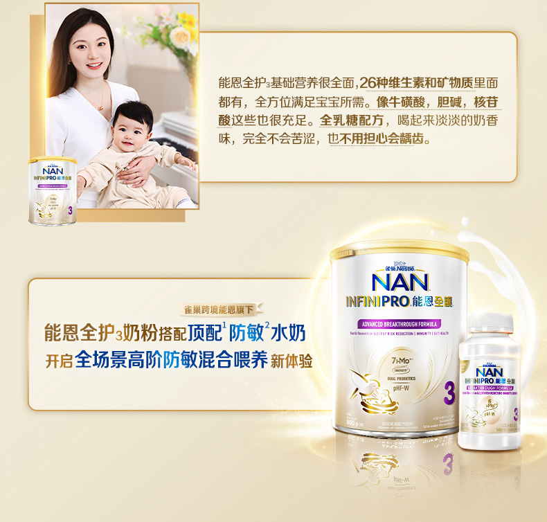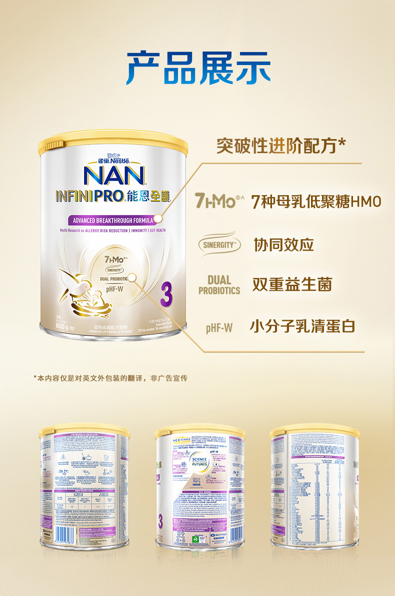 【新版】Nestle雀巢能恩全护7HMO幼儿成长配方奶粉3段800g