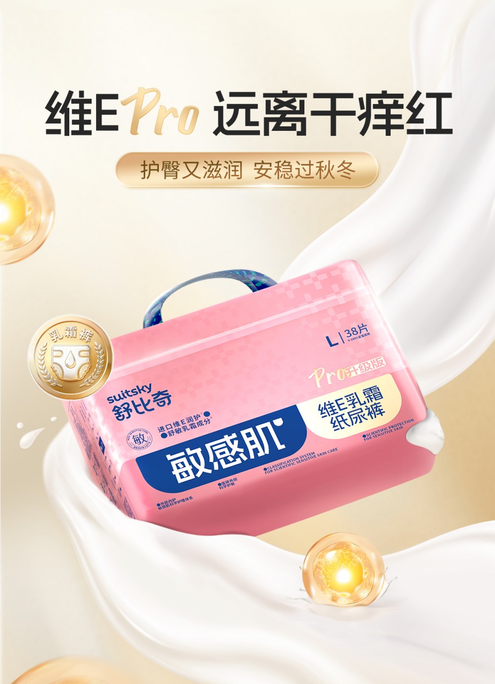 国内发货 舒比奇(Suitsky)敏感肌维EPro乳霜纸尿裤L码 (38片/包)